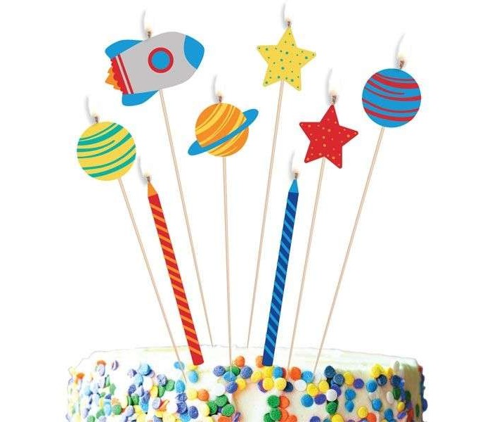 CONJUNTO DE 8 VELAS TEMA ESPACIAL